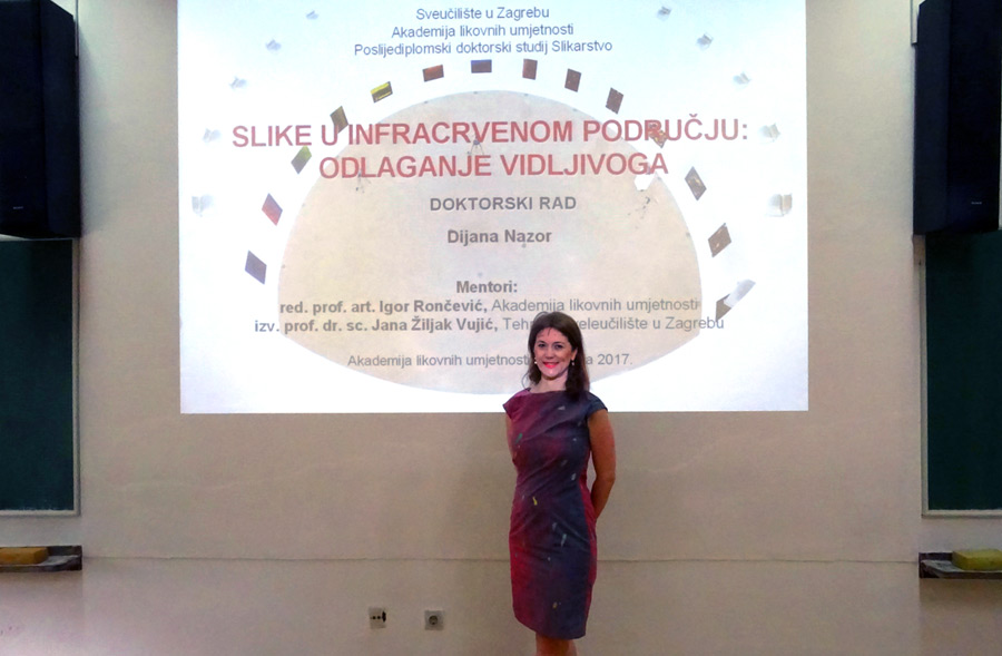 Dijana Nazor, viša konzervatorica-restauratorica u Odjelu za štafelajno slikarstvo Hrvatskog restauratorskog zavoda, obranila je 27. lipnja 2017. doktorsku disertaciju pod nazivom Slike u infracrvenom području: odlaganje vidljivoga na poslijediplomskom umjetničkom studiju Slikarstva na Akademiji likovnih umjetnosti Sveučilišta u Zagrebu.