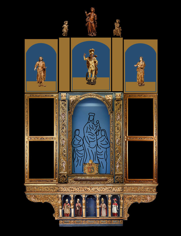 Hrvatski restauratorski zavod i ustanove iz kojih je potekao izvodili su konzervatorsko-restauratorske radove na brojnim skulpturama ove radionice tijekom više desetljeća, od 1970-ih godina do danas. Posljednjih godina u okviru pripreme izložbe neke su umjetnine restaurirane u Zavodu, dok su druge restaurirane u restauratorskoj radionici Muzeja za umjetnost i obrt, na Odsjeku za konzerviranje i restauriranje Akademije likovnih umjetnosti te u privatnim restauratorskim radionicama. Stoga ovu izložbu, osim kao predstavljanje umjetnina jedne kiparske radionice, možemo promatrati i kao izlaganje povijesti restauriranja polikromirane skulpture u Hrvatskoj te kao pregled suvremene restauratorske prakse. Ovaj dodatni sloj izložbe iskorištava sretnu okolnost da su na skulpturama srodnog oblikovanja rezultati različitih restauratorskih pristupa lako zamjetljivi, pa se mogu uspoređivati.