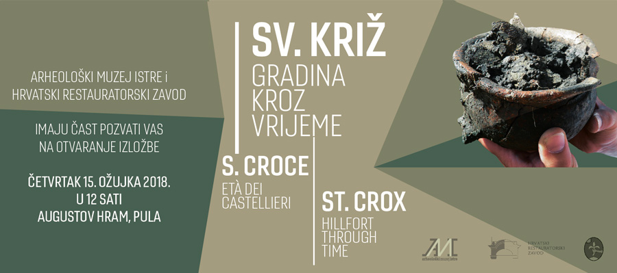 Arheološki muzej Istre i Hrvatski restauratorski zavod imaju čast pozvati Vas na otvorenje izložbe »Sv. Križ: gradina kroz vrijeme« u četvrtak, 15. ožujka u 12 sati u Augustovom hramu u Puli.