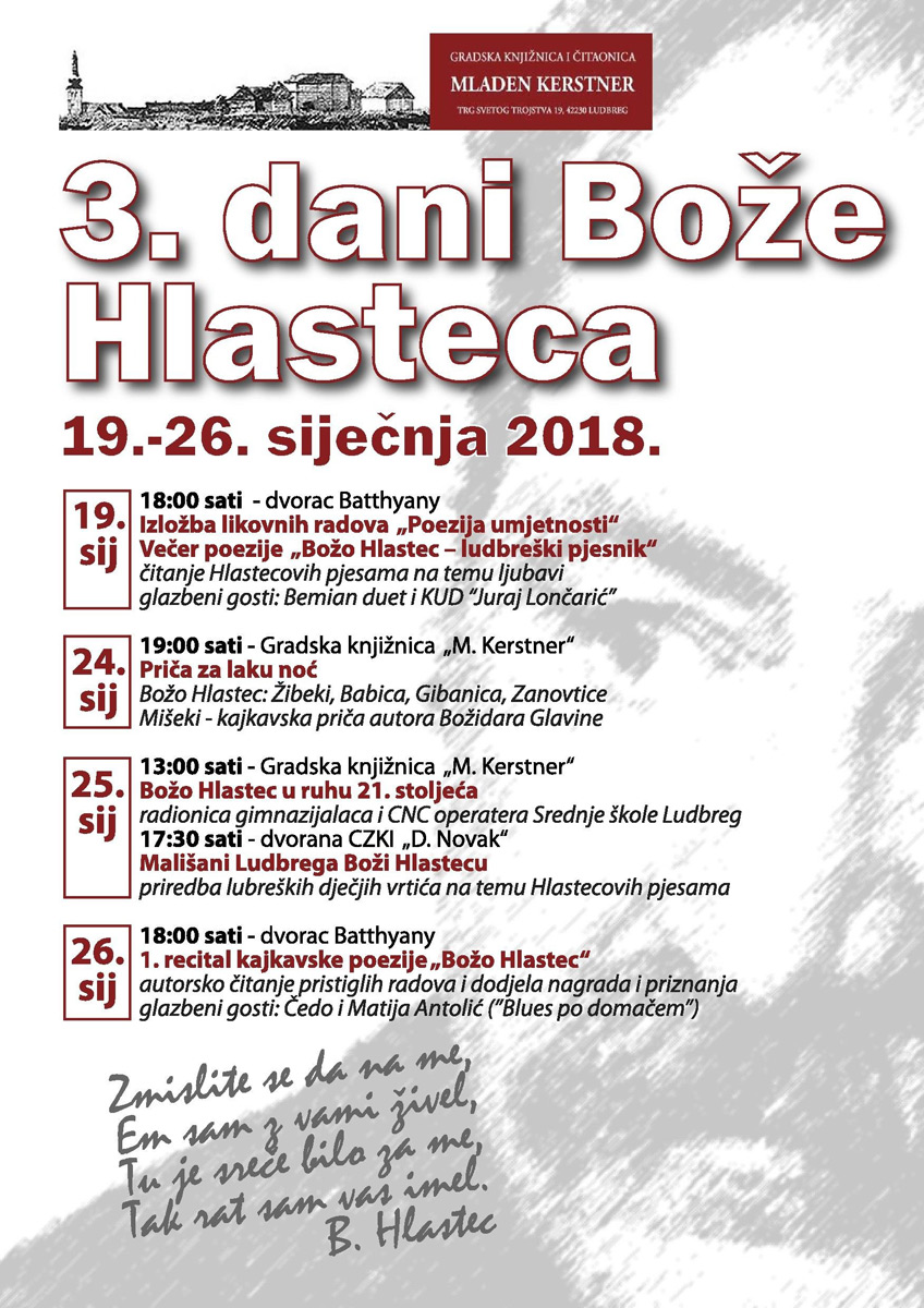 Grad Ludbreg i Hrvatski restauratorski zavod imaju čast pozvati Vas na „Noć u dvorcu“ koja će se održati u petak, 26. siječnja 2018. od 18 do 22 sata u dvorcu Batthyány u Ludbregu.