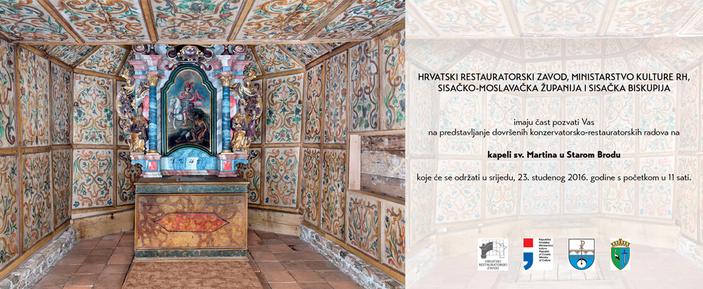 U srijedu, 23. studenoga 2016. godine u 11 sati u Starom Brodu održat će se predstavljanje dovršenih konzervatorsko-restauratorskih radova na kapeli sv. Martina. Drvena kapela sv. Martina u Starom Brodu rijedak je primjer tradicijskog narodnog baroknog graditeljstva s cjelovito očuvanim oslikanim interijerom. Kroz stoljeća je kapela imala važnu ulogu u svakodnevnom životu seljana kao mjesto okupljanja u bogoslužju te kao snažan simbol višestoljetnog opstanka sela unatoč ratovima i poplavama. Iako je bila u izuzetno dotrajalom i ruševnom stanju te bez (u ratu evakuiranog) inventara, kapela je ostala u funkciji sve do 2007. godine kad je počela građevinska obnova. Nakon završetka radova 2015. godine, kapela je vraćena u funkciju i posvećena, a pravilnom obnovom omogućeno je očuvanje svih njezinih tradicijskih i povijesnih značajki.