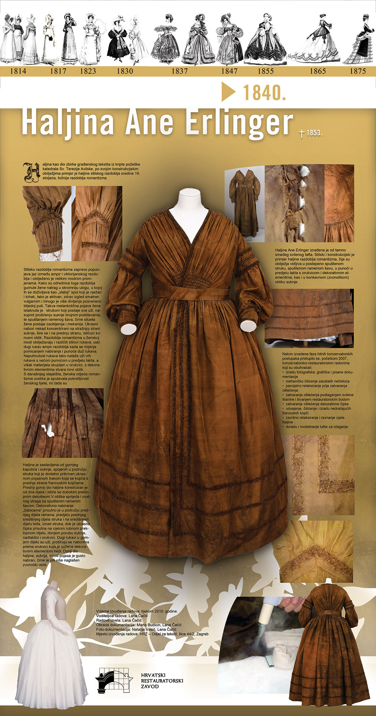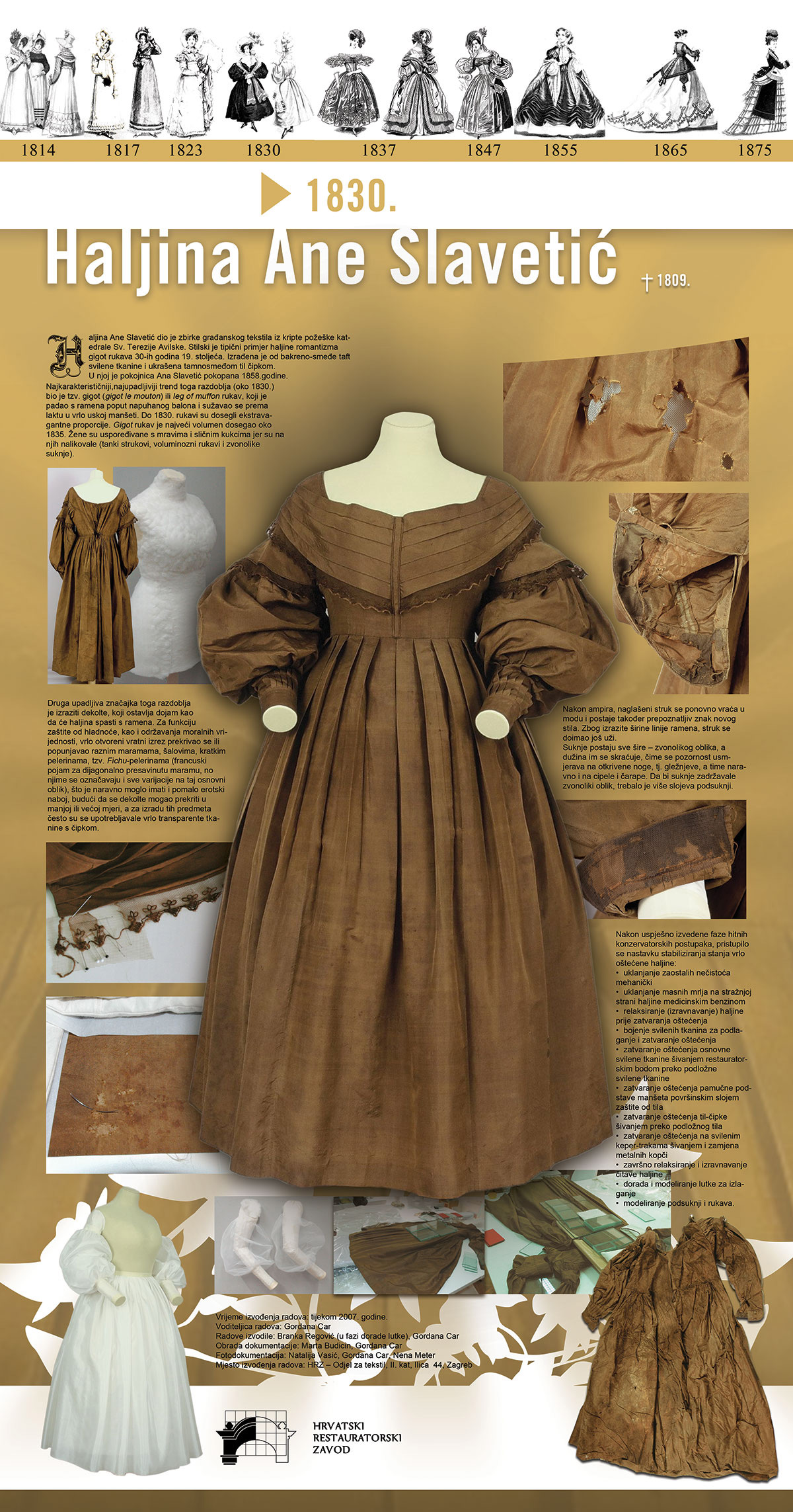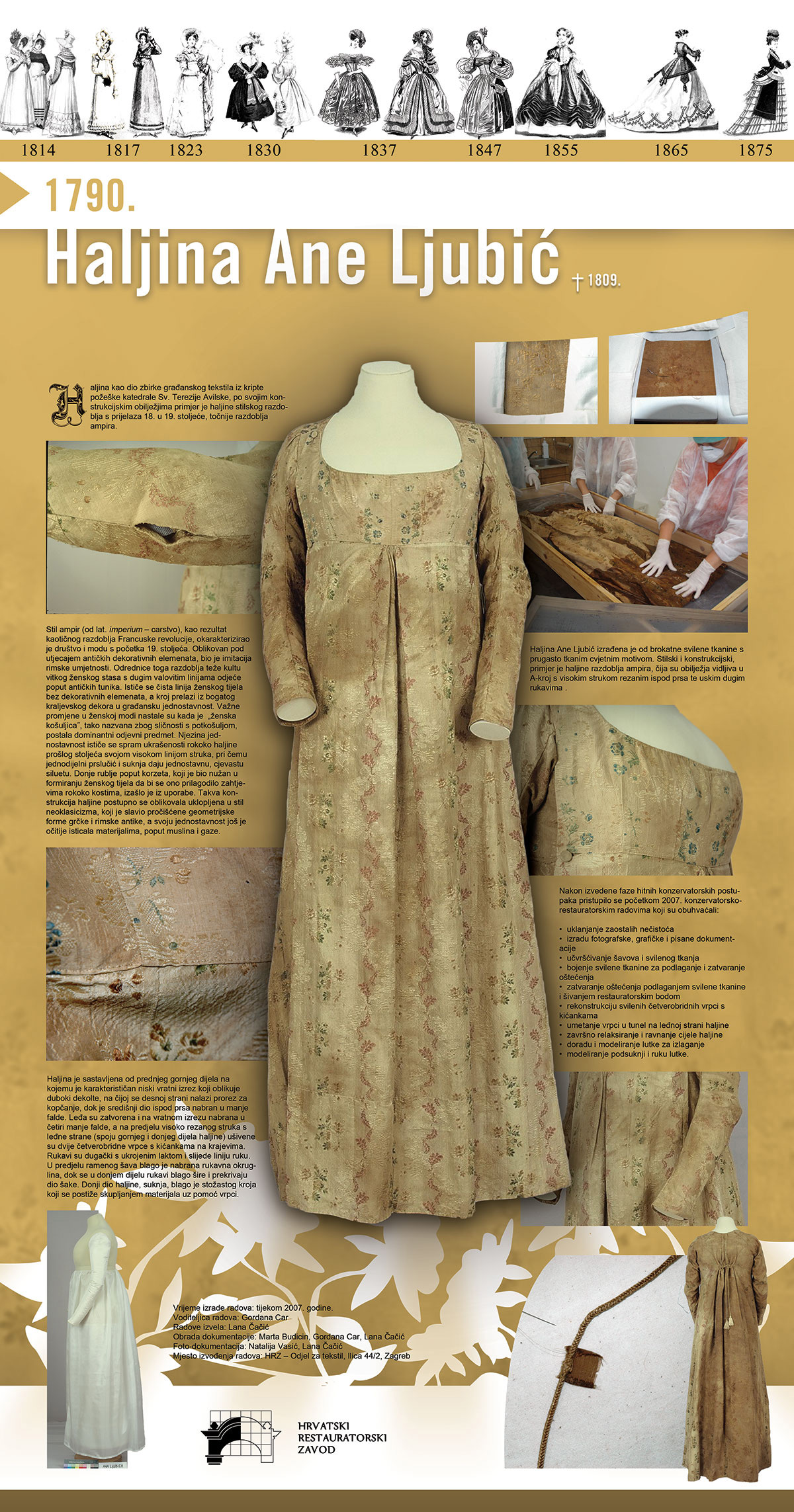Nije čest slučaj da su pogrebni tekstilni predmeti očuvani u toj mjeri da im se može vratiti izvorna fleksibilnost te da se nakon završetka radova mogu izložiti na lutkama i prezentirati javnosti. Upravo u slučaju tekstilnog inventara kripte katedrale sv. Terezije Avilske stanje predmeta to je omogućilo. Riječ je o situaciji gdje je moguće istovremeno prezentirati veći broj haljina s popratnim predmetima koje nas na osobit način, od desetljeća do desetljeća vode kroz devetnaesto stoljeće, dajući presjek čestih promjena i razvoja modnih stilova. Uz to, haljine odabirane za posljednji ovozemaljski put spona su između života i smrti pokojnica i pričaju nam priče o svojim vlasnicama i njihovom životu. Ta spoznaja ne ostavlja nas ravnodušnima i pobuđuje poštovanje.