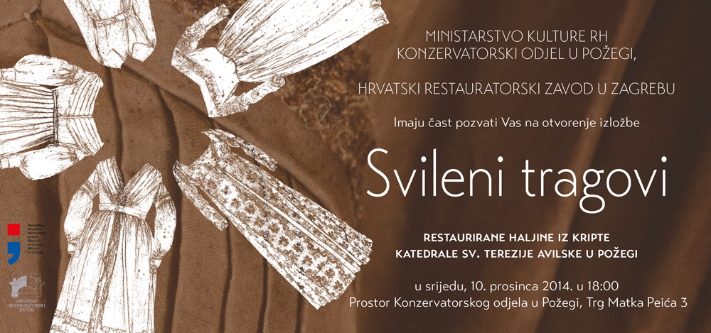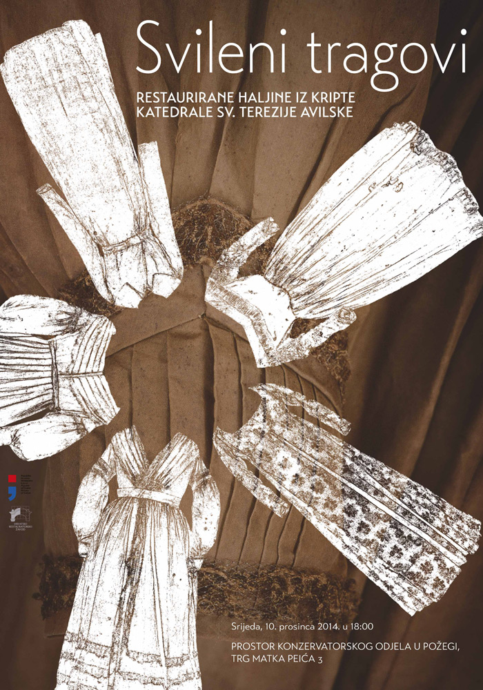 Izložba Svileni tragovi, koja se otvara 10. prosinca 2014. godine u Požegi, rezultat je zajedničke suradnje Konzervatorskog odjela u Požegi i Hrvatskoga restauratorskog zavoda na istraživanju i restauriranju tekstilnog inventara iz kripte katedrale sv. Terezije Avilske u Požegi. Izložba obuhvaća prezentaciju svih tekstilnih predmeta na kojima su dosada izvedeni konzervatorsko-restauratorski radovi iz bogate, obimne i krasne zbirke pogrebnog liturgijskog i građanskog tekstila iz 18. i 19. stoljeća.