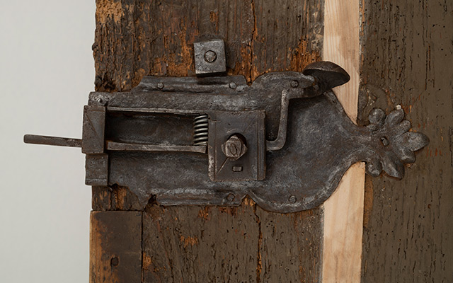 Dvokrilna drvena vrata s oslikanim ukladama iz župne crkve Bezgrešnog začeća Blažene Djevice Marije u Lepoglavi nastala su oko 1676. godine.