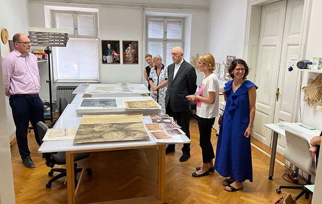 Njegova Ekscelencija apostolski nuncij u Republici Hrvatskoj monsinjor Giorgio Lingua 12. srpnja 2024. posjetio je radionice Odjela za tekstil, papir i kožu Hrvatskog restauratorskog zavoda u Zagrebu.