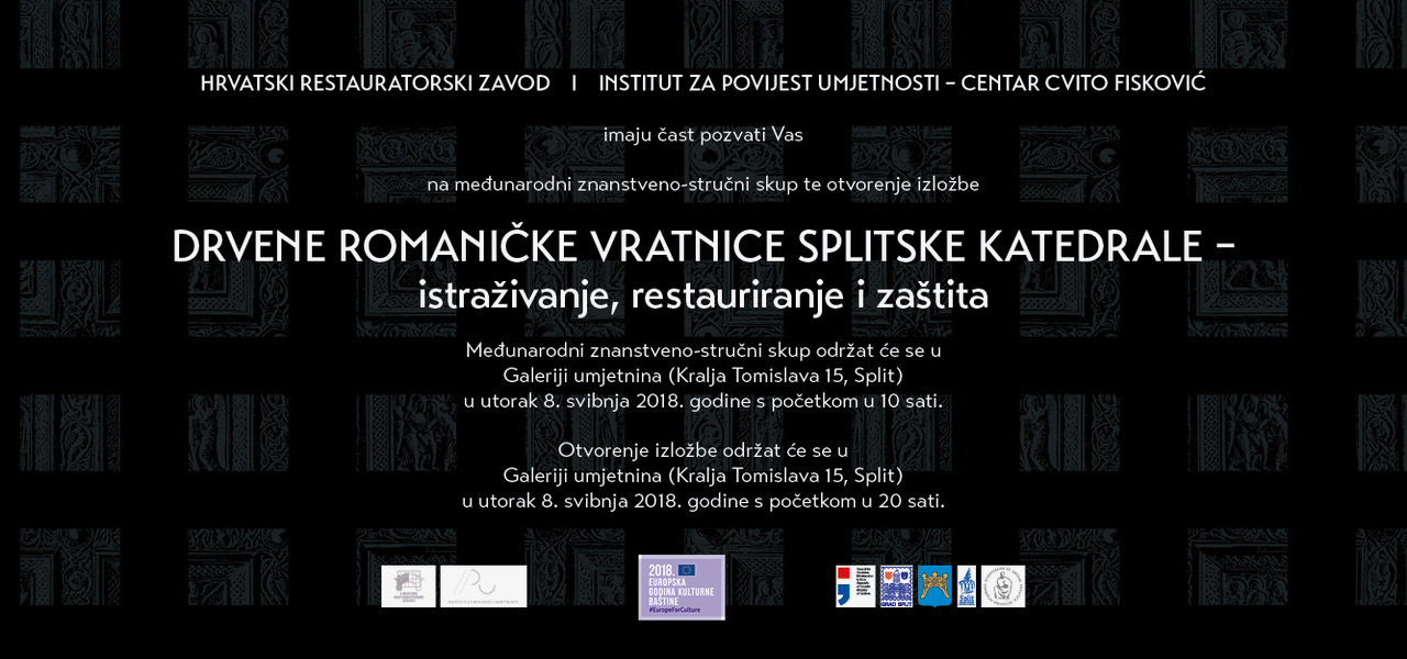Skup i izložba zaključak su četverogodišnjeg programa Hrvatskog restauratorskog zavoda u koji su bila uključena multidisciplinarna istraživanja, konzerviranje, restauriranje i zaštita jednoga od iznimnih umjetničkih djela splitske, ali i europske srednjovjekovne baštine – drvenih vratnica splitske katedrale koje je izradio majstor Andrija Buvina 1214. godine.