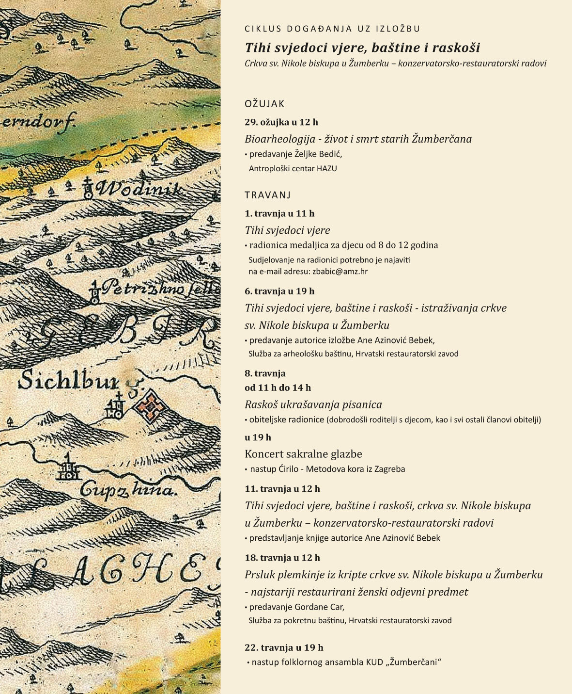 Arheološki muzej u Zagrebu i Hrvatski restauratorski zavod imaju čast pozvati Vas na otvorenje izložbe Tihi svjedoci vjere, baštine i raskoši. Crkva sv. Nikole biskupa u Žumberku – konzervatorsko-restauratorski radovi u utorak, 21. ožujka 2017. godine u 12 sati.