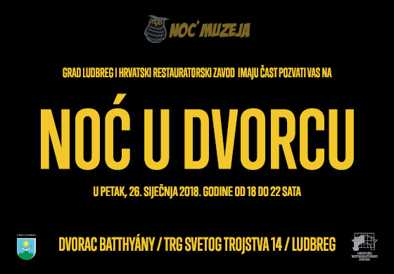 Grad Ludbreg i Hrvatski restauratorski zavod imaju čast pozvati Vas na „Noć u dvorcu“ koja će se održati u petak, 26. siječnja 2018. od 18 do 22 sata u dvorcu Batthyány u Ludbregu.