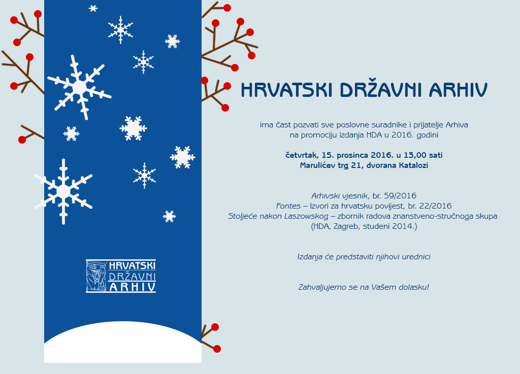 Zbornik radova, kojim su obuhvaćeni radovi S. Cvetnić, S. Grković, S. Keleuve, Ž. Kolveshi, M. Lučić, I. Mirnika, M. Petkovića, T. Pleše, Lj. Sabljak i M. Stipančevića, bit će predstavljen u četvrtak, 15. prosinca 2016. u 13 sati u Hrvatskom državnom arhivu.