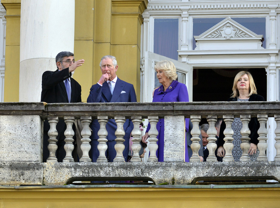 Uz premijera Tihomira Oreškovića i suprugu Sanju, princa od Walesa i vojvotkinju od Cornwalla u ponedjeljak su u Banskim dvorima dočekali ravnatelj Hrvatskoga restauratorskog zavoda Mario Braun i konzervatorica povjesničarka umjetnosti Andrea Šimunić.