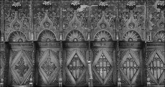 Drvena korska sjedala trogirske katedrale sv. Lovre, bogato izrezbarena biljnim i figuralnim motivima unutar 32 arhitektonski raščlanjene ćelije, izvorno pozlaćene i oslikane akordom crvene, plave i žute boje, velebno su djelo dalmatinskog rezbara Ivana Budislavića, naručeno 1439. godine i plaćeno 18 dukata po sjedalu.