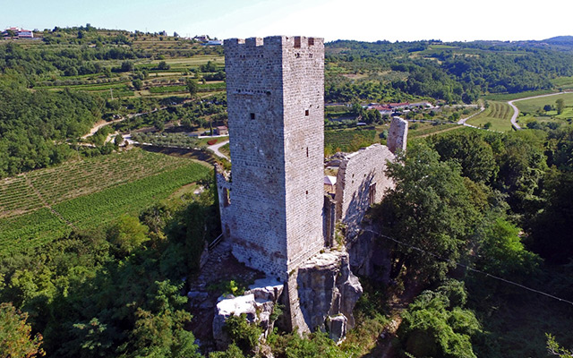 Na izoliranoj stijeni iznad doline rijeke Argile, na sjeverozapadu istarskoga poluotoka, nalaze se ruševine momjanske utvrde. Još uvijek sačuvana kula kvadratnog tlocrta i pripadajući obodni zidovi te ostaci sustava pristupnog, podiznog mosta u kombinaciji s dominantnim položajem stvaraju jednu od najimpresivnijih slika srednjovjekovnog obrambenog graditeljstva u Istri. Osim mogućnosti nadzora prometnice, položaj utvrde na stijeni, koja je sa svih strana okružena strmim i dubokim liticama, osiguravao je odličnu obranu.