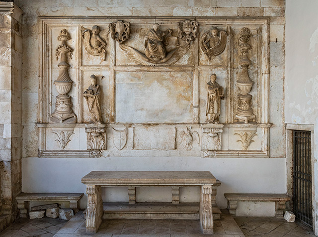 Hrvatski restauratorski zavod (voditeljica: Helena Ugrina, Odsjek za kamenu plastiku Split, Služba za nepokretnu baštinu) počeo je u kolovozu 2023. s dokumentacijom, istraživanjima i probnim konzervatorsko-restauratorskim radovima na kamenoj plastici. U prvoj fazi radova snimit će se reljef kombinacijom 3D snimanja i fotogrametrije, provesti povijesna i konzervatorska istraživanja te istraživački konzervatorsko-restauratorski radovi na kamenoj plastici, koja uključuju i probna čišćenja te konsolidaciju. Detaljnije stanje kamene građe bit će poznato nakon dobivenih rezultata ostalih laboratorijskih analiza koji su nužni za izradu dokumentacije i metodologije restauratorskih radova planiranih za 2024. godinu. (HU)